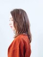 明るすぎないベージュ系カラーに顔周りは少しレイヤーの入ったスタイルです。かきあげとレイヤーが顔をすっきりと見せベージュ系カラーで全体的に明るい爽やかな大人っぽく。