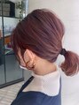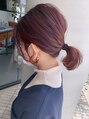 結んでも可愛く見えるように、表面、襟足、耳周り、もみあげにハイライトを入れた後に、ブロッサム(大人っぽいレッドバイオレットカラー)を重ねて、大人っぽい品のあるハイライトカラーに仕上げました