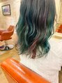 スタイルは【ブックマーク】しておくと便利です!"colorのポイント"ブリーチ2回以上必須ですが目立つこと間違いなし!!ブルーやグリーンをベースに赤、バイオレットをポイントで入れてます!特殊カラーになりますのでご相談下さい!