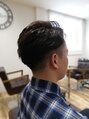 全体を2ブロックでスッキリとカット前髪はかきあげて流しながらお手軽にセットできるスタイルです♪