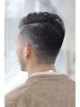 8:2の分け目の所に細めのラインを入れる事でカッコよさが際立ちます。サイドからバックにかけて刈り上げるバーバースタイルに仕上げております。スタイリングもとても簡単