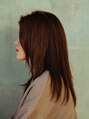 センターパートのロングレイヤースタイルです。レイヤーにより軽さと動きを出しているのでパサつきや広がりなくスタイリングすることができます。レイヤーが入っている為、コテで巻いたときに動きがでやすいです。カラーはツヤがあるブラウン系です。
