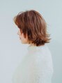 前髪をオン眉にした個性派ウルフです。ウルフなのでレイヤーがしっかりと入っている為、ストレートアイロン又はカールアイロンでワンカール巻いた後にスタイリング剤を揉みこめば簡単にスタイリングすることができます。カラーは透け感があるベージュ系です。
