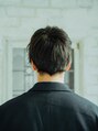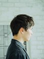 ゆるっとくせ毛風にくせをつけたメンズショートスタイルです。バングは左右に流し、清潔感のあるスタイルでオフィスワークにも◎ 襟足もタイトに短くしてさっぱりと。