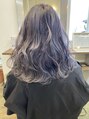 根元を暗めにし中間から毛先をブリーチをして透明感のあるグレーパープルにしました!波ウェーブとの相性も良く可愛さUP☆