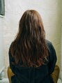 前髪ぱっつんの大人かわいいロングスタイルです。カラーは暖色系で毛先はブリーチをしてオンカラーしています。