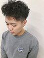 メンズスパイラルパーマサイド、バックはすっきりと刈り上げ少し長めに残したツーブロックスタイルにスパイラルパーマでランダムにうごかしています!