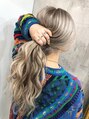ブリーチ+カラーでホワイトベージュにカラーしてからダークブラウンのローライトを混ぜながらシールエクステ90枚でロングスタイルに。