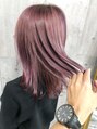 ハイトーンから黄ばみとオレンジ味が出ないようにムラサキ色を混ぜながらツヤピンクにトーンダウン。まだまだピンクカラーが人気です。