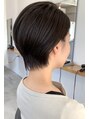 浮きやすい襟足は収まりよく、後頭部の丸みを残した上品なフォルムのオトナショートです。柔らかいマットグレージュが落ちついてキレイ。