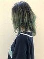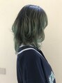 スタイルは長めのウルフスタイルカラーはあえてワイドリタッチのグラデーションカラーにグリーンを入れました。カラーのコントラストがきれいです。