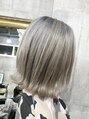 ブリーチ履歴のある髪にさらにブリーチをして透明感あるシルバーグレージュにカラーしました。透明感カラーには外ハネボブが可愛いです。是非お試し下さい。