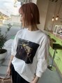オレンジカラー×ラインボブヘア【@sowi_abe】