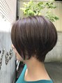 少しクセのある髪質と毛量の多さで扱いにくいことが多いとのこと。ショートスタイルでもあまり段をつけすぎないように注意し毛量はかなり減らして、扱いやすくなる様にカットしました。ショートなのでカラーで個性を引き立たせた、クールボブです。