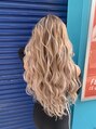 バレイヤージュを施し赤味のない外国人風に!くすみ感を強調し最新の外国人風に仕上げエクステをチョイスし長さとボリューム感をだしてアレンジ多彩な万能スタイルで巻き髪スタイルを楽しめます