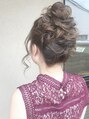 ふわふわなアップスタイル。上の方でつくるシニヨンは、華やかで可愛らしい印象になります。おくれ毛を残すとラブリーすぎるので、後ろはスッキリまとめて。