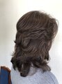 パーマでふんわり感を出し、オレンジブラウン系カラーで艶感を出したエレガントなマダムヘアーです。