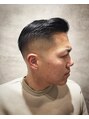 これぞ barberstyleというクラシックSTYLE。0.1ミリからのスキンフェードがエッジを効かせます。立ち上がった前髪は7:3で分けらたサイドパートスタイルは、クラシックな渋い男の雰囲気を醸し出します。
