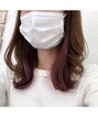 全体的には黄色味パサつき感を抑える様にモーヴブラウンを被せ、インナーカラーのピンクを遊びで加えてあります。インナーカラーなので隠す事も出来、秘密でも楽しみやすいですよ(^^)