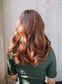ゆるくパーマをかけることでかっこ可愛いスタイルになります。カラーは明るめのオレンジベージュでツヤっぽく。スタイリングはミルク系のものとスプレーを使うことで少しまとまったカールを表現できカジュアルな雰囲気でかっこいいです!![町田/町田駅]