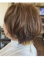 ボブベースに表面だけ動きが出るように少しだけ段を入れ毛先をゆるく巻きました。