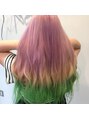 塩基性カラーで作る、甘露寺蜜璃風カラー!パステルピンクから黄緑のグラデーションカラー!鬼滅の刃が流行ってる今!挑戦するのがオススメです!二回以上ブリーチが必要です◎