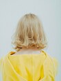 表面にレイヤーが入った前下がりボブです。カラーはブリーチを2回して黄味を抑えるためにバイオレット系カラーを薄めてオンカラーしています。