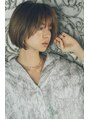 女性らしいソフトなデザインの中にクールな印象を織り交ぜた大人ボブです。スライドカットによるソフトなレイヤーと長短をつけた前髪でバランスを整えています。カラーはオレンジベージュにして鮮やかな発色とツヤ感を叶えました。