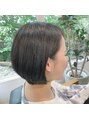 黒に近いダークグレー。切りっぱなしだと重くなってしまうのでレイヤーを入れて軽さも出せるショートボブ
