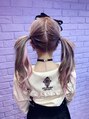 みのりんちゃんです。リタッチして、くすみめのピンクラベンダーに!エクステは45本編み込みでつけました。ベース色をメインにピンク、パープルをミックスさせました。仕上げはツインテールで!