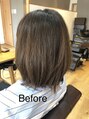 肩下からえりあしギリギリの長さまでばっさりショートボブに。毛量の多い方も内側からおさまるようにカットしてあげるとお手入れも簡単です。イルミナカラー で透明感のあるグレージュに。