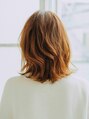 肩につく長さの外ハネスタイル。あえて全体にウエーブをつけることでナチュラルな柔らかい印象に。
