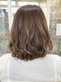 外ハネMIXのくせ毛風ランダムウエーブです。オイルで束感を少し出してしあげするだけの簡単スタイリングです。色は透明感ある、アッシュブラウン。大人かわいいを目指すのには、無造作ヘアがオススメ☆