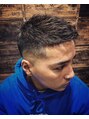 前髪にかけて長めに残したフェザーアップSTYLE。スキンフェードと組み合わせる事でエッジの効いた男らしいスタイルとなります。フェードスタイルの中でも1、2を争う人気スタイルです!