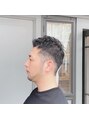 2ブロックや、ナチュラルな刈り上げスタイルも大人気ですが、「格闘家のようなヘアースタイルにしてみたい!」というご希望であえて、角を残し、長短の差をくっきり付けるスタイルに挑戦された男性のお客様のバックショットです。