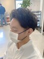 トップは太めのロッドでサイドは毛先のみ細かいロッドを巻く事によりナチュラルな印象に。2ブロックはグラデーションで上の方を長めに設定しているので、浮きやすい方でもコンパクトに収まります。厳しい職場でもバレにくいナチュラルパーマスタイルです。