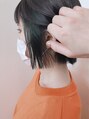 肩下の伸びかけスタイルから顎ラインのパッツンボブにカットし、元々のブリーチベースの髪にグリーンが強めのターコイズをインナーに入れて表面は暗めのグレーを入れた個性派スタイルです!