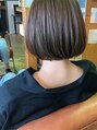 コロンとまるみのあるショートボブに、室内と屋外で色味が変わって見えるやわらかいグレージュ。