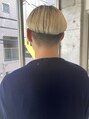 クラシックマッシュ。マニッシュな感じを残しながら、クラシックなモード感を大切に。グラデーションをつけずに切ることで、個性を出します。カラーはブリーチのみのハイトーンで