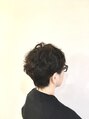 ヘムラインをレザーでタイトに絞ってトップはランダムにスパイラルパーマを。