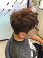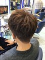 サイドとネープはスッキリ刈り上げ。ハチははりやすいので、トップにボリュームがでるようにカット。カラーはトーンアップで、軽く見えるようにカラーチャンジ。