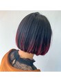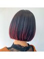 毛先のブリーチ毛を活かし、レッドバイオレットをのせてデザインしたグラデーションカラー☆すそラインにバランス良くなっていたのでカットと組み合わせてとてもカジュアルな印象に☆