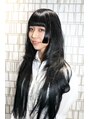 腰まであるロングに姫カットとハイレイヤーを入れて毛先のズレを作りロングヘアーの方でも動きと軽さを出しています。根元から中間までは2レベルのブラックに!鎖骨下から毛先には3レベルのブルーブラックで光沢と少しの遊び心をプラスしてます。