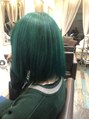 全頭ブリーチして、緑色のせました!この緑を入れるのにブリーチがしっかり抜けてないと入らないのでしっかりぬけるまでブリーチしました!