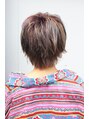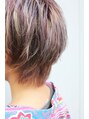 トップにチョップレイヤーを入れたマッシュレイヤーショート、カラーはリタッチブリーチ後に根元にベリーピンク、更にグレーのハイアンドローを入れ3ミックスカラーで超ランダムミックスカラー。