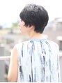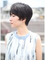ニュアンスパーマで毛流れをつくり、黒髪でも重く見えない、透明感のあるベーリーショート。コンパクトでナチュラルな大人スタイル。
