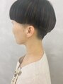 シンプルなマッシュショートスタイル。水平に近い前上がりのラインとインナーのかみが邪魔をしないように刈り上げたことでモード感がアップ