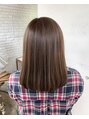 ブリーチを使わないでアッシュ系のカラーにしてます。外ハネや内巻きアップスタイルなど色んなヘアアレンジができる長さです。