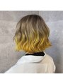 ブリーチ回数3回ベースのボブスタイル!トップはホワイティーベージュと毛先にはカラーミューズトリートメントでイエローをオンカラー!グラデーションで個性的なひまわりカラースタイルの完成です!!【池袋/池袋東口/池袋駅/ボブ/ミディアム】
