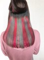 レッド系とシルバー系のストライプカラーです。ブリーチ回数はご相談下さい。
